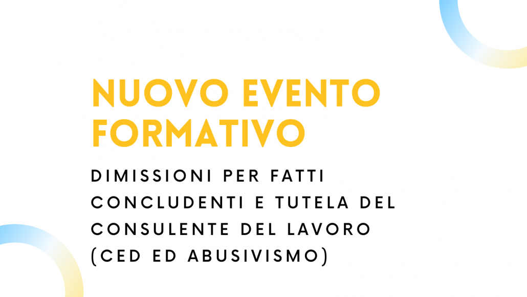 Nuovo Convegno Formativo – Dimissioni per fatti concludenti e tutela del Consulente del Lavoro (CED ed Abusivismo)